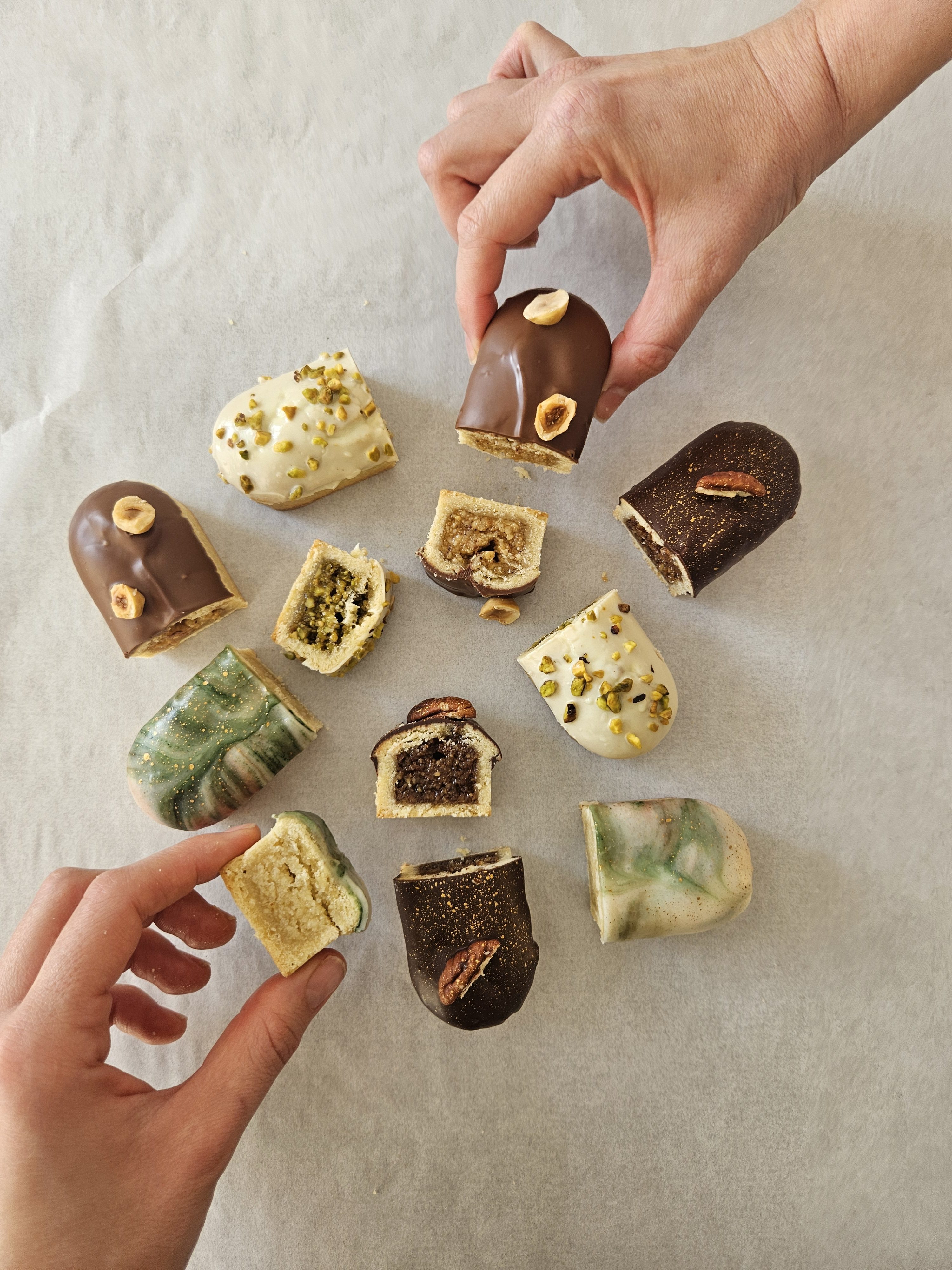 ◦ Easter: Mini figolli variations including classic almond, hazelnut with orange, pecan with miso caramel and pistachio with lemon.
