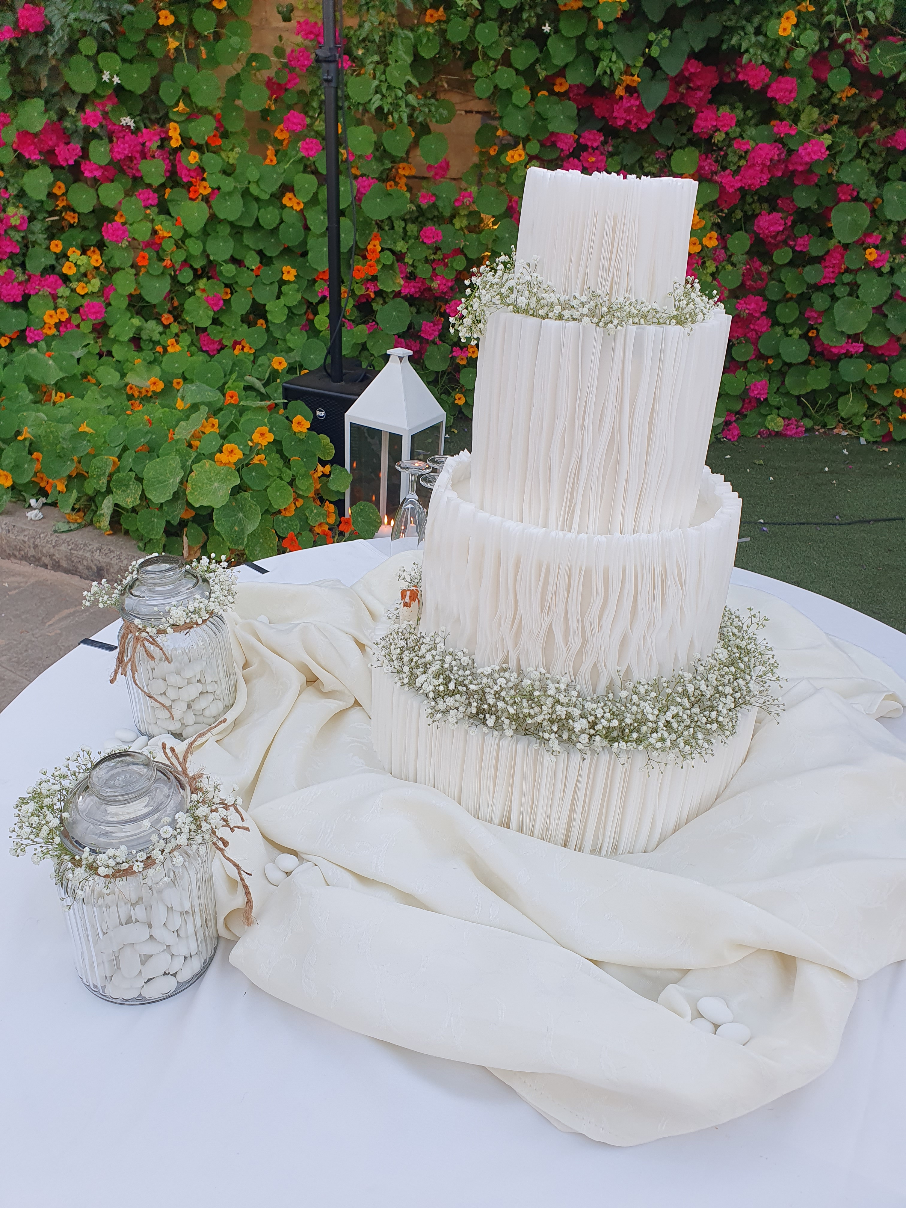 Tina’s aesthetic embodies an elegant, understated charm, seamlessly blending contemporary design with timeless simplicity. The elegant multiple tier rice paper cake is slowly becoming Tina’s signature style customised by the number and proportion of tiers and personal floral arrangements.
